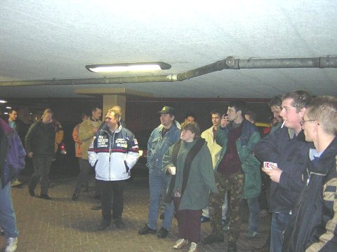 Middenin de limburgers, links daarvan mannen van onder Rotterdam. 'Winkelhof' Leiderdorp.