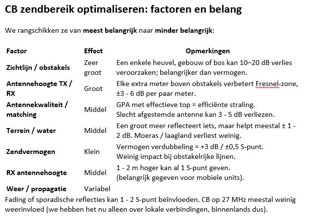 Bovenstaande linker staatje laat volgens mij toch wel heel duidelijk zien dat vermogen zo goed als geen invloed heeft op het bereik. Het heeft wel invloed op modulatiekwaliteit. In de CB wereld is