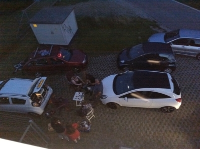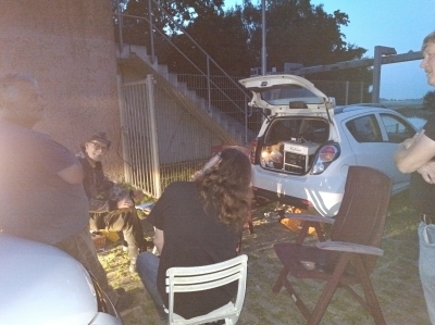 Dooijersluis, Kockengen (prov. Utrecht) Vanavond probeerde ik, Arno van de Radio, na 13 jaar stilte weer een radiovos neer te zetten. Wel had ik een reunievos georganiseerd dit voorjaar en ook daar had ik net als vandaag voor de zekerheid Rob de Bopper als hulp bij gevraagd wat hij enthousiast als hij altijd is graag wilde doen. Ik had toen trouwens nog geen eigen spullen ook, maar nu dus wel, inclusief een zelfgebouwde vosbeep met de herkenbare Streekvos beep ('American Ambulance' vertraagd). Die bleef het nog doen ook, maar wat heb je er aan als de versterker het er bij laat zitten na 45 minuten? En zo geschiedde helaas. Ik heb de volgende morgen meteen dat ding geopend en er in gekeken omdat ik zorgen had dat de dure 28v powertransistors die er in zitten bij deze brandlucht producerende ellende de geest hadden gegeven. En toen pas ontdekte ik dat de vorige eigenaar een beunhaas was die de beide 68 ohm 2 watt koolweerstanden eruit gerookt had, maar geen nieuwe had geplaatst of laten plaatsen... Dat het ding toch nog 45 minuten heeft gewerkt is dus vrij bijzonder. Maar goed, het was vrijdagavond 20:30u en daar gingen we dan weer Rob en ik. Piepen maar, op een hele bijzondere plek t.w. Dooijersluis Kockengen. Het is eigenlijk een poldergemaal en op het dak kun je prachtig over de polder en het water uitkijken met in de verte de A2 en ons draaipunt Ruwiel. Nee, je hoeft niet op het dak te klimmen. Er is gewoon een stenen trap naar boven want het is een toeristisch uitkijkpunt. En daar stond de antenne. Terwijl Rob en ik even zaten bij te komen en het aggregaat stroom leverde, het door mij gebouwde Streekvoskastje met 2 TTI bakjes er in en 2 voedingen (13.8v voor de bakjes en 24 volt voor de liniear) en de vosbeep het werk deden (en Rob ook want die maakte ook nog even thee) zagen we hoe 2 vissers net hun hele nachtviskamp hadden opgebouwd vanuit 2 bestelbussen en een BOA keurig in groen-bruin uniform toen zijn werk ging doen. Even later zagen we de 2 alles weer opbreken terug de bestelbussen in en vertrekken... (ik denk niet dat die 2 vrijwillig al weer weer weg gingen). ![]() In het zwart op de rug gezien Mario uit Alphen a/d Rijn. Op 30-03-2026 bleek Mario helaas heel plotseling te zijn overleden. Dit bericht bereikte ons op 31-03-2026. Het wachten was nu op de 1e binnenkomer, want deze testvos (uiteraard bedoeld om de apparatuur te testen) leverde meteen al rijders op zo had ik begrepen. En daar hoefden zowel ik als Rob niet lang op de wachten, want al spoedig kwam er iemand aanrijden die zichzelf recent nog 'de eeuwige laatste binnenkomer' noemde in iets andere bewoording. Nou daar hadden wij bij de Streekvos lang geleden al een boodschap over, Deze boodschap luid zo: 'De eersten zullen de laatsten zijn en de laatsten zullen de eersten zijn!' En inderdaad werd lang geleden die eeuwige eerste binnenkomer uit Den Haag met zijn grote mond laatste. Maar vandaag was het Mitch uit Hoofddorp die overtuigend eerste binnenkomer werd. Overtuigend omdat hij al 11 minuten na de 1e piep bij ons was! Goed bezig die Mitch, hij was er dus al om 20:41u. De volgende was geen verrassing, want dat was Danny Half Watje en die kwam natuurlijk wel van iets verder weg. Vandaag was hij begonnen in Nieuwegein, zo vertelde hij ons desgevraagd en was bij ons om 20:55u. Dat was dus ook zeker geen slecht resultaat. Maar we kregen dan ook uit de wijde omtrek goede s-rapporten en een goed signaal vost gewoon prettiger en daardoor vaak ook succesvoller vind ik. De 3e binnenkomer kwam van nog een stukje verder weg, dat was namelijk Arthur uit Leusden met zijn leuke kleine hondje. Nummer 4 was de bekende blauwe Skoda van Stephan uit Hilversum met Elina (dat schrijf ik toch wel goed hè, want je kunt zomaar ruzie met haar krijgen als je haar naam niet goed verstaat heb ik gemerkt... Nee grapje natuurlijk). Er was even onduidelijkheid want Rob vond eigenlijk dat Elina Eline moest heten, maar dat vond Elina geen goed idee :-) Mario en Michaela uit Alphen aan den Rijn waren het 5e team dat ons gevonden had en na een korte binnenkomst (want hij was ook snel weer vertrokken) was daar RonPD en toen werd het stil d.w.z. geen binnenkomers meer voorlopig. Het was 21:40u, 5 minuten na het arriveren van Mario en Michaela... Nou ja, helemaal stil was het niet. Want behalve dat mijn 24 volt liniear uitgevallen was en we al een tijdje op Rob's setje stonden te kachelen (dat konden de deelnemers horen aan de snellere vosbeep dan aan het begin van de avond) het aggregaat tot 3x toe zonder brandstof bleek te staan (en Rob en ik toen steeds hard gingen lopen om het ding snel weer aan te krijgen) was er ook nog iemand constant commentaar aan het leveren op het feit dat Streekvos Nederland kanaal 7 gebruikte voor de radiovos. Deze man deed het voorkomen dat kanaal 7 zijn individueel eigendom was en wij hier niets te zoeken hadden. Helaas voor hem lachte ik hem uit (want dat durf ik wel van een afstandje hoor :-) ). ![]() En toen werd de eentonigheid van de man onderbroken door de komst van Collin & Femke die minder goed nieuws brachten. Collin had veel moeite gehad ons te vinden doordat zijn s-meter stond te 'knetteren' (contactprobleem (?) waardoor het ding telkens verschiet, wat heel irritant is). Ik heb dat zelf gehad toen ik net weer rond reed en die grote magneetvoet met die lange spriet op het dak van mijn kleine autootje gebruikte. Wat een ellende was dat, ik peilde zelfs achteruit op een bepaald moment. Drama! Ik kreeg toen een gouden tip van Stephan en sindsdien rijd ik veel minder verkeerd en is de magneetvoet werkeloos geworden. Maar Collin had niet alleen last met zijn meter en peiling, ook was Femke niet helemaal oke en die kroop daarom maar in de auto. Beetje mindere avond voor het jonge tweetal uit Amersfoort dus en dat zien wij natuurlijk liever anders. Het was 21:50u toen zij er waren en dat waren achteraf de laatste binnenkomers van deze testvos Streekvos avond. We hebben dus 7 auto's binnen gehad en dat is voor een testv