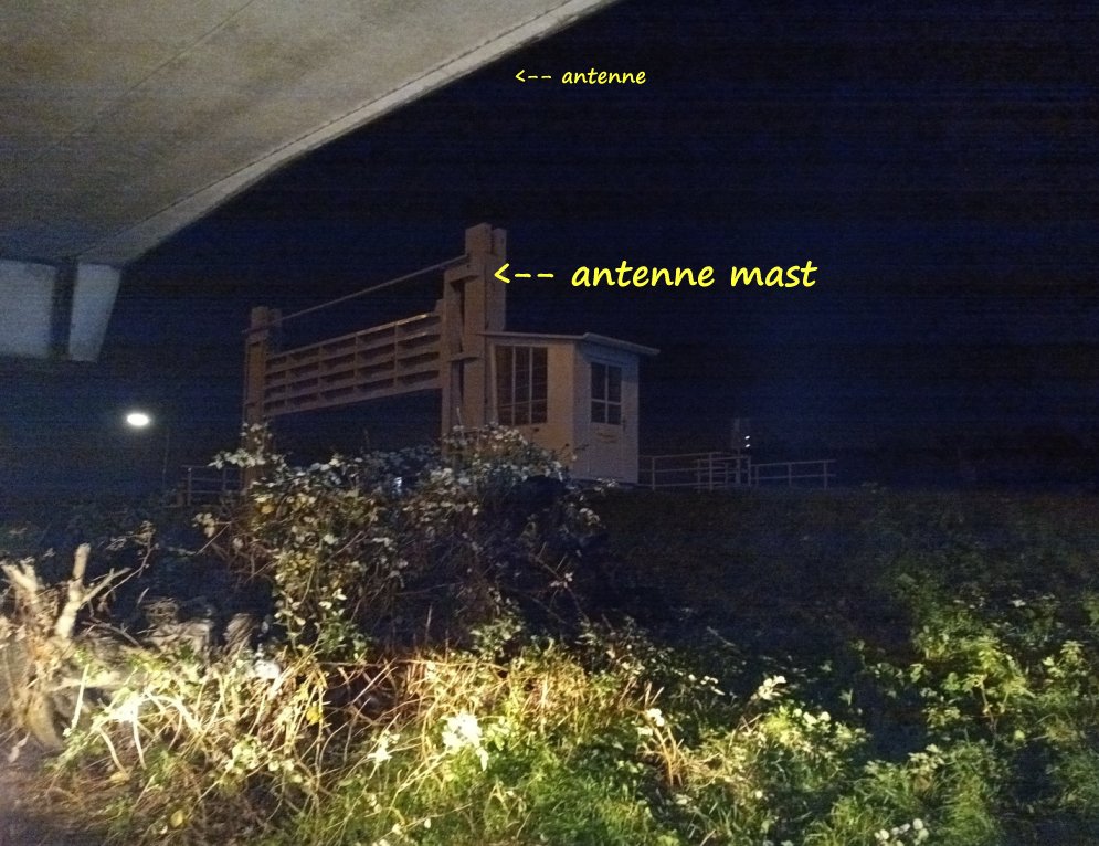 hadden wij al voorzien. Dat kwam omdat we maar beperkte hoogte konden maken met de antenne en deze hierdoor op bijna gelijke hoogte kwam te staan met de bovenleidingen van het treinspoor. Daar staat hoge