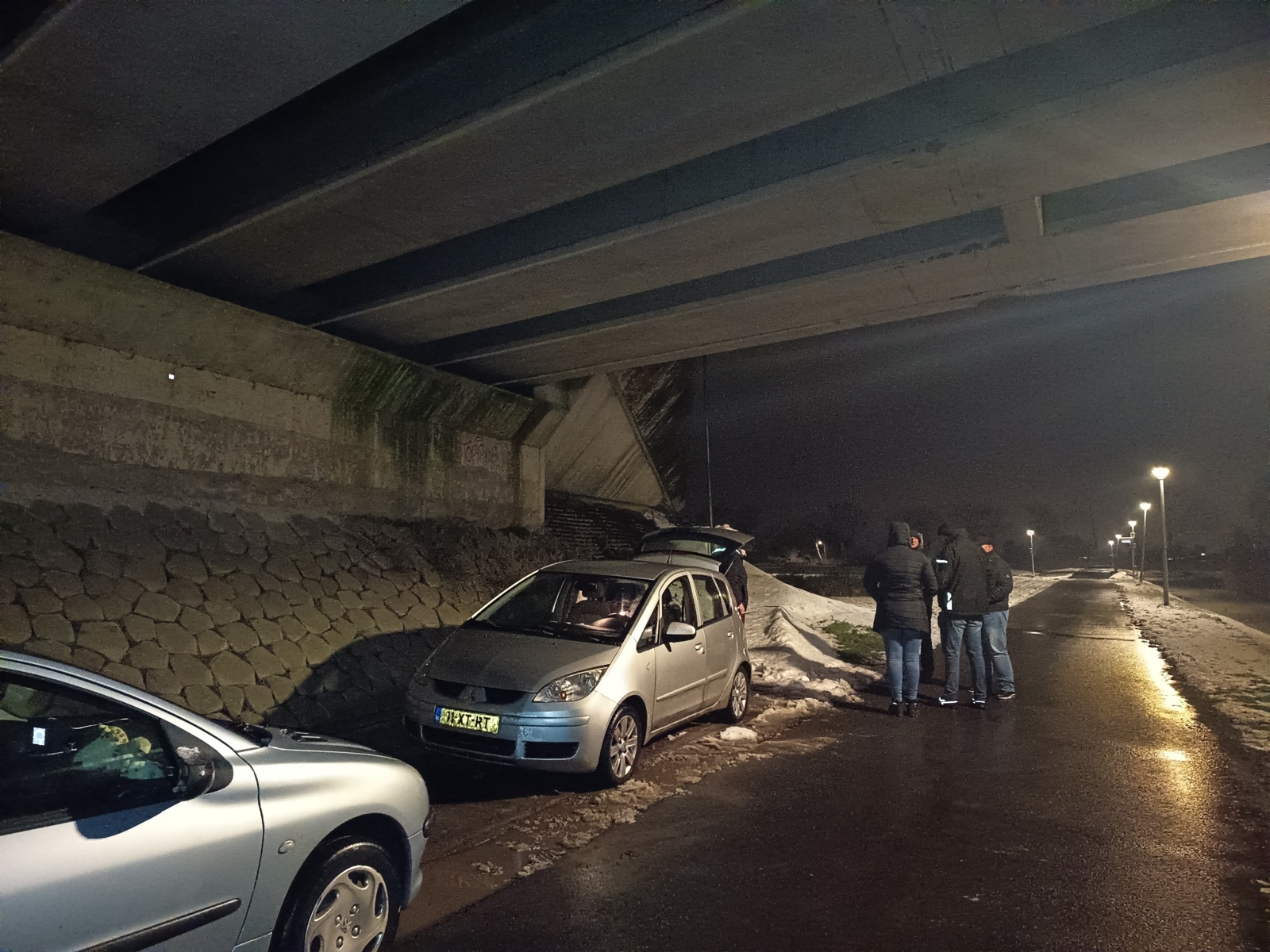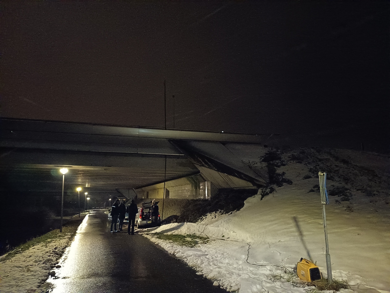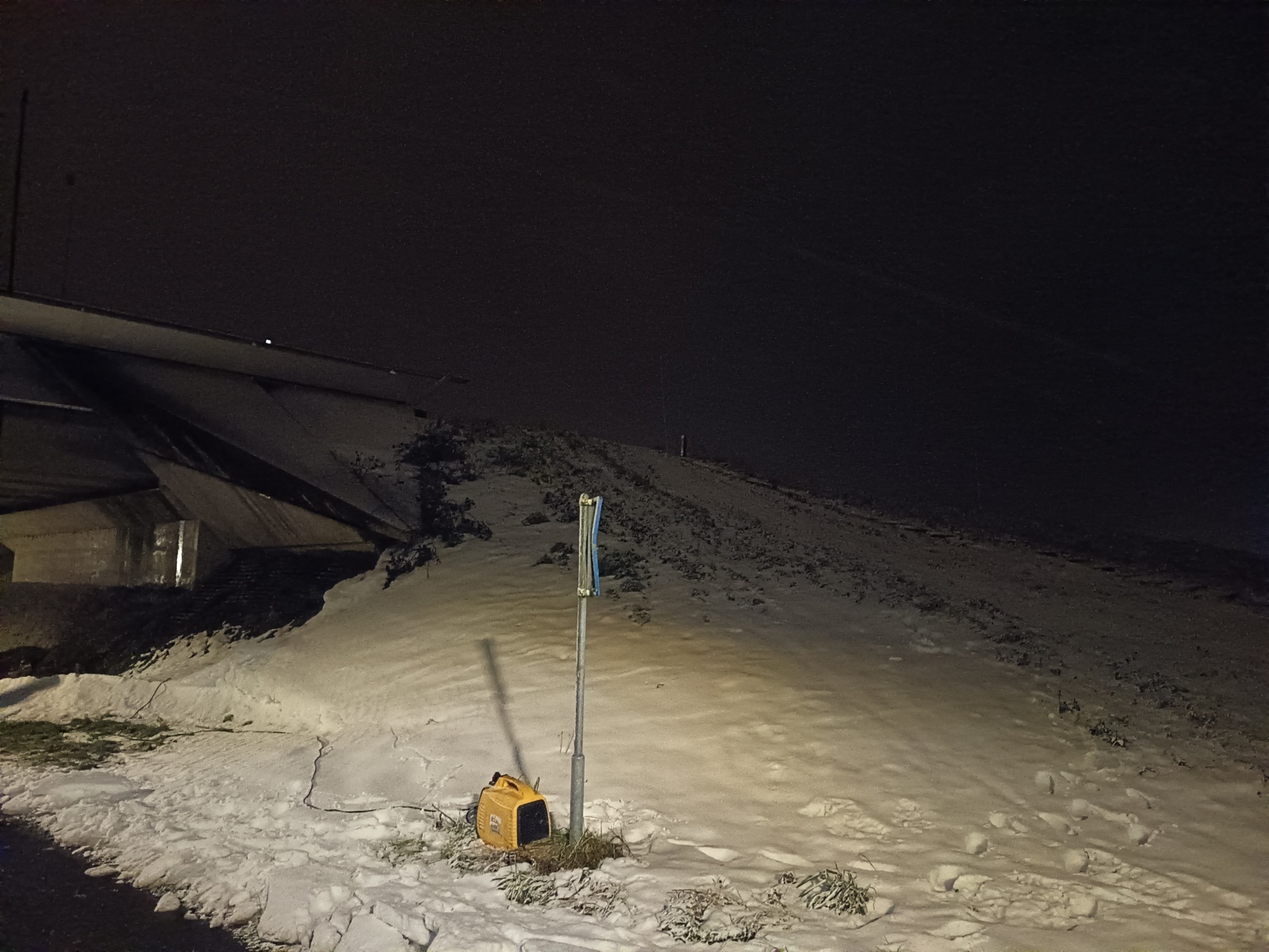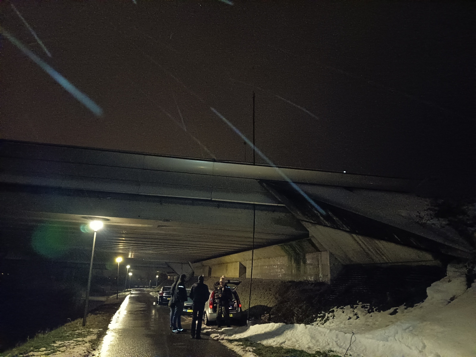 al snel reacties van basisstations op afstand welke bevestigden dat het signaal prima was en zo zaten we genoeglijk ingepakt in dikke kleding te kijken naar de sneeuw die viel maar ons niet bereikte omdat wij net onder het viaduct aan